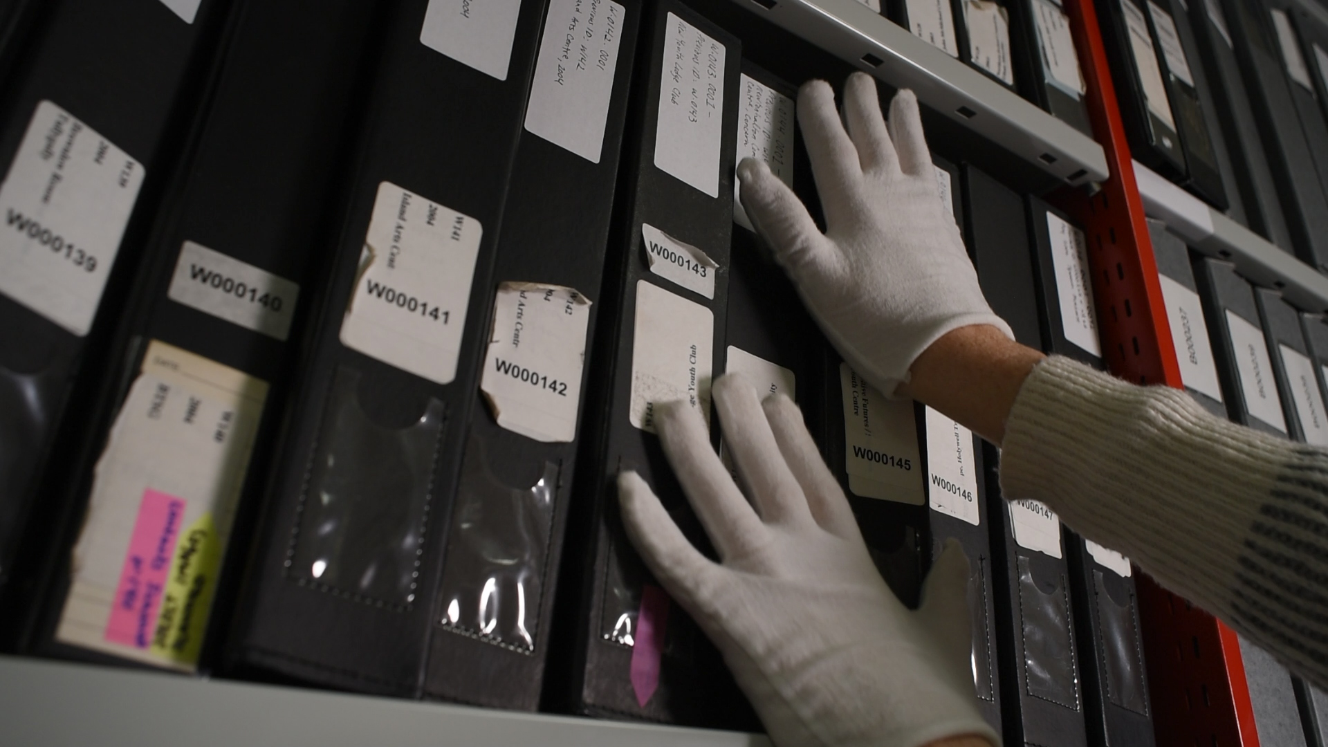The script for the film ‘Things Like That’ is based on an interview with Mervyn Smyth, archivist and one of the founders of Belfast Exposed. Footage I made of myself performing as an imaginary overwhelmed archivist was intended as initial research, but became the back bone of the film, the sliding doors at the entrance becoming a kind of punctuation.